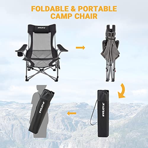 - Einfach einsetzen: Der Campingstuhl kann schnell und einfach aufgeklappt und verstaut werden, mit einer Aufbewahrungstasche für einfachen Transport.